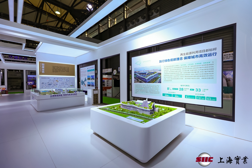 上实展厅聚焦固废处置和水质净化业务,选取具有理念引领性和技术先进性的代表项目案例,通过电子屏幕、沙盘模型、造型展板、实物展品、文创互动和艺术展陈等多种方式,全面展示了集团环保产业服务国家战略、推动高质量发展的总体布局,集中呈现了集团坚持绿色低碳发展、助力环境生态保护的成功实践。