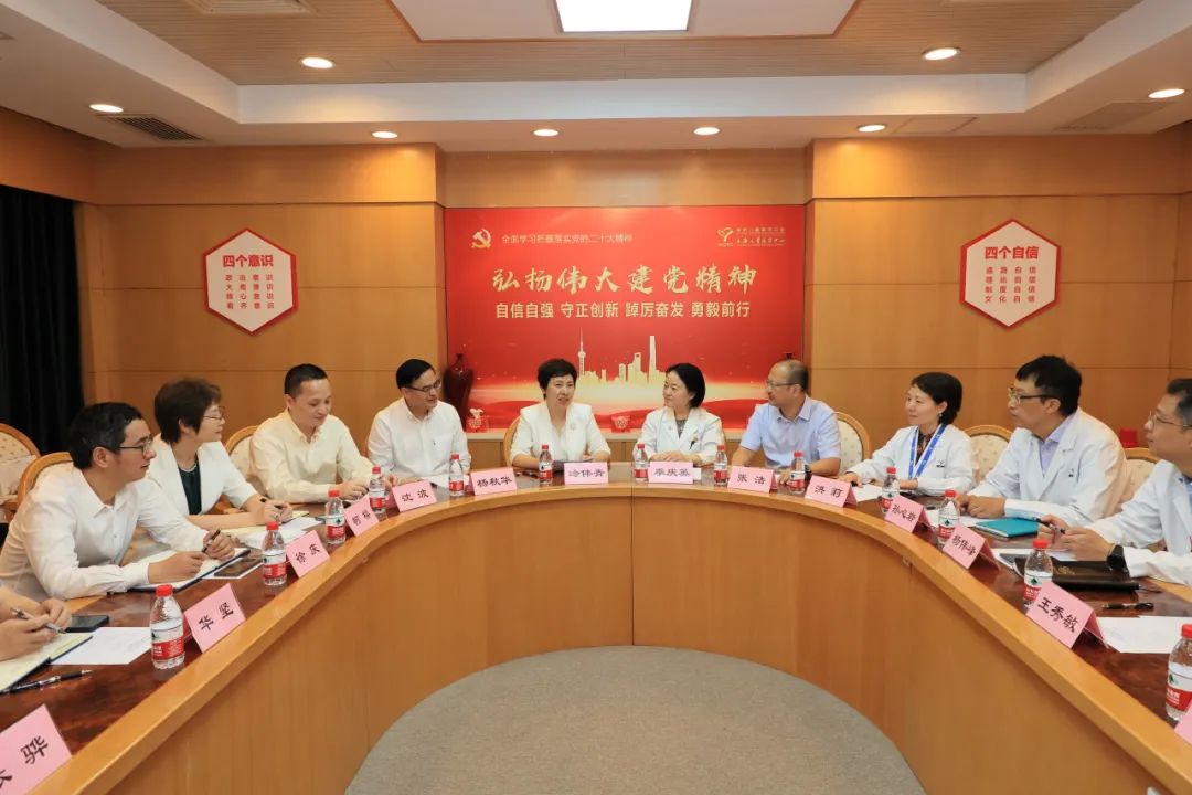 7月12日,上实集团董事长冷伟青一行赴上海交通大学医学院附属上海儿童医学中心(以下简称“上海儿童医学中心”)调研考察,与上海儿童医学中心党委书记季庆英、院长张浩进行会谈,双方就发挥各自优势资源,加强细胞治疗创新药研发、儿童病用药、罕见病用药等多领域合作进行深入交流。