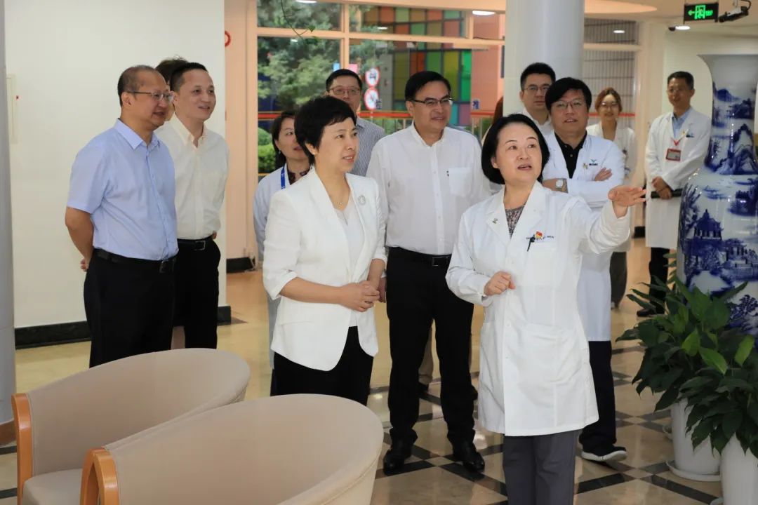 上海儿童医学中心副院长洪莉,上实集团副总裁、上海医药党委书记、董事长杨秋华,上海医药执行董事、总裁沈波,上海儿童医学中心相关科室负责人,上实集团、上海医药相关职能部门、企业负责人参加调研考察。