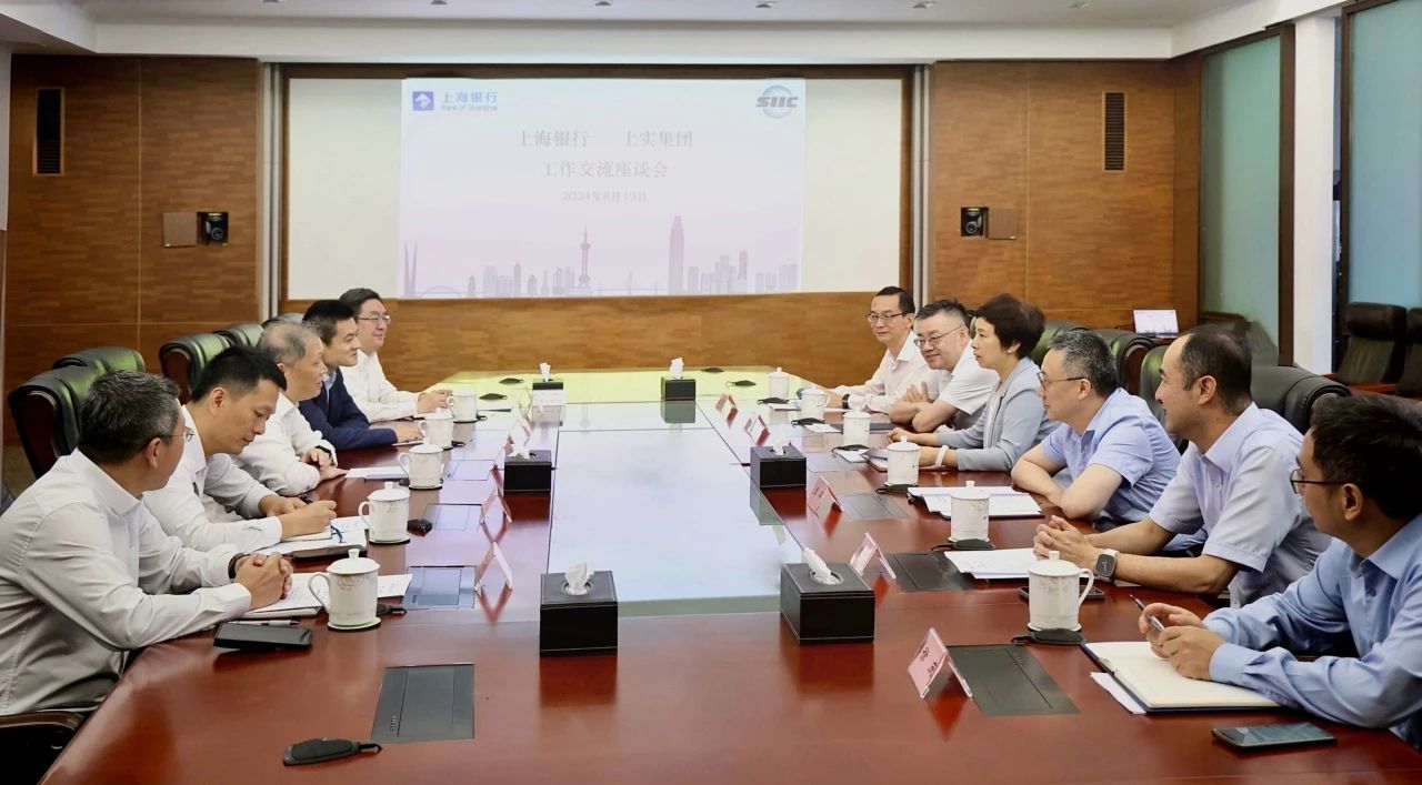 8月19日下午,上实集团董事长冷伟青与到访的上海银行董事长金煜举行会谈,双方就进一步加强银企合作,推动共同发展进行深入交流。集团总裁张芊出席座谈会。